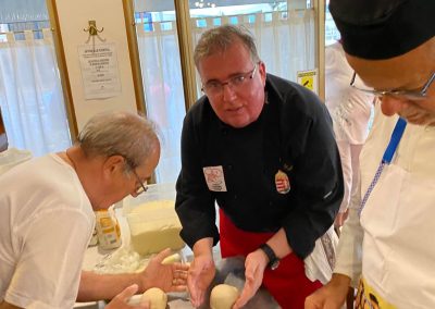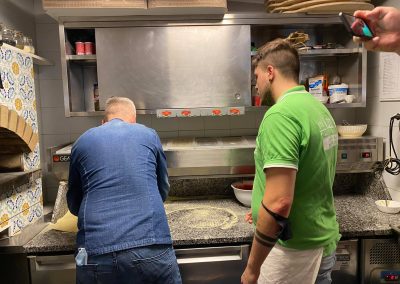Simone, secondo le sue stesse parole, ha dimostrato con passione l’arte della pizza. Abbiamo impastato noi stessi l’impasto e abbiamo imparato come ottenere la consistenza perfetta. Abbiamo lavorato con ingredienti freschi: salsa di pomodoro, basilico, mozzarella e potevamo scegliere tra diversi condimenti. Simone ha spiegato ogni passaggio nel dettaglio e poi ha condiviso con noi trucchi e suggerimenti. Le pizze finite si sono rivelate paradisiache, croccanti e gustose. In questo caso, se vuoi raccogliere il sale, lo prendi prima.